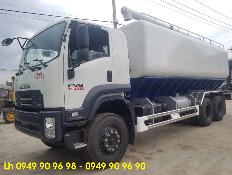 Xe Isuzu FVM34TE4 17 tấn bồn chở cám thức ăn chăn nuôi 27 khối trục vít tải. Mẫu xe này có tải trọng cho phép cao, xe hoạt động hiệu quả trong phạm vi bán kính 500km. Công suất bơm trung bình 1 phút hết 1 khối cám viên. Chi phí đầu tư chỉ 1,820,000,000Đ (Một tỷ tám trăm hai mươi triệu đồng chẵn).